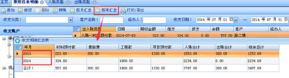 費(fèi)用往來(lái)明細(xì)增加收支明細(xì)匯總功能:按月匯總、按年匯總;