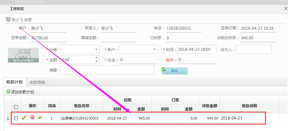 工程收款:計(jì)入應(yīng)收款的出庫單流程完成后在,對(duì)應(yīng)客戶的工程收款中生成待收款信息