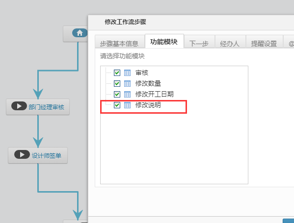 1、進入【系統(tǒng)設置】---【工作流】---【預算審核】,打開功能模塊將修改說明勾選。