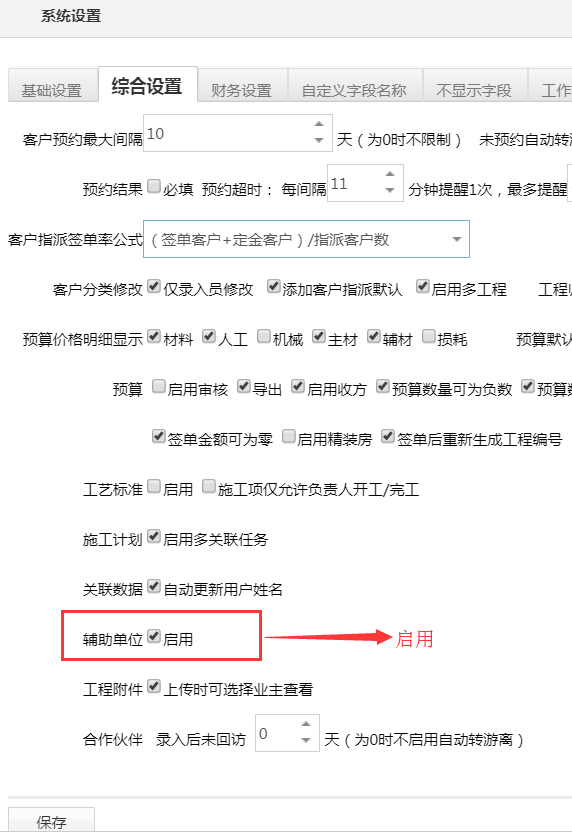 依次點(diǎn)擊:系統(tǒng)設(shè)置--綜合設(shè)置--啟用輔助單位