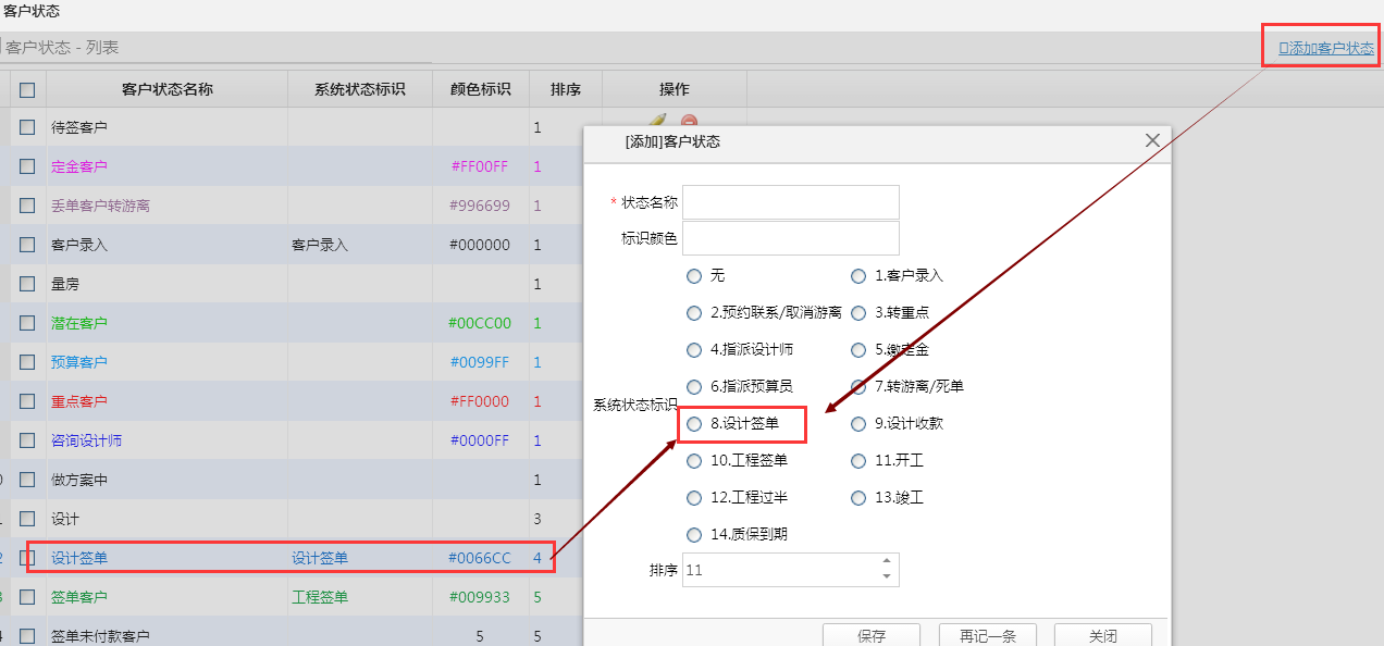 三:(注意事項(xiàng)2)--觸發(fā)位置:設(shè)計(jì)合同審核完成后客戶狀態(tài)如果沒(méi)到“簽單客戶”,就將客戶狀態(tài)改為設(shè)計(jì)簽單,否則不修改客戶狀態(tài)