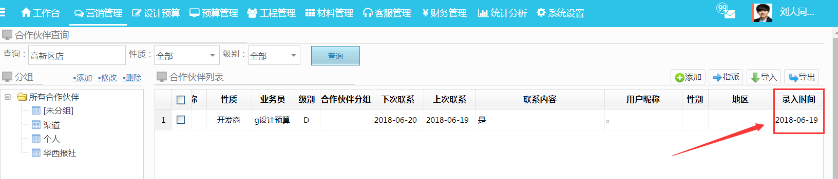a、合作伙伴新增錄入時(shí)間,此功能的完善很好的區(qū)分此合作伙伴最先歸屬哪位錄入人員